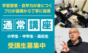 すべての授業はベテランのプロ講師がおこない、各科目の基礎基本からしっかりと丁寧に指導します。各科目とも基礎基本の土台を徹底理解させる授業と毎日課題の連動で、学力アップだけでなく自分で考えて乗り越える力がみにつきます。